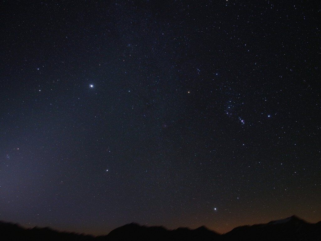 03:15 Uhr hielt ich das SQM-L wieder in die Höhe, das einen gemittelten Wert von 21,65 ausgab. Ja, auch mit freiem Auge waren die Bedingungen richtig gut. Das Zodiakalband war im Bereich des Stieres, knapp über den Hyaden, überdeutlich, und kreuzte Richtung Osten bald den „leuchtenden“ Streifen der breiten Wintermilchstraße. Es herrschte eine seelige Ruhe, der Wind hatte wieder vollständig abgeflaut... Ach, ist das schön hier. Man muss jeden Moment genießen, denn früh genug geht es wieder nach Hause und der Alltag kehrt zurück. Da spielen Müdigkeit, Kälte oder mangelnde Motivation (was alles drei eh nicht der Fall war) auch keine Rolle mehr, und allein der fantastische Anblick des aufsteigenden Winterhimmels mit den strahlenden Orion, Stier, Fuhrmann & Co. sollte Motivation genug sein.