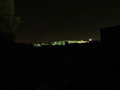 20:34 Uhr startete ich den Aufbau und beendete ihn etwa 10 Minuten später. Das geht doch schon recht schnell! 11°C, die sich bei beginnender Feuchte jedoch kühler anfühlten. Der Himmel ohne Wolken war typischerweise brutal hell, aber besser als noch am 09.10. Die gespaltene Milchstraße war bis in den unteren Teil von Aquila zu sehen. Immerhin. Die Beleuchtung vom E-Center war noch an, sollte sich aber nach 21:00 Uhr ausschalten. Bis dahin machte ich Bilder von meinem Arbeitsplatz.