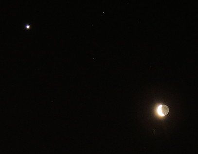 Später am Morgen war es noch immer wolkenlos und das Dreamteam Mond-Venus zierte die Dämmerung.